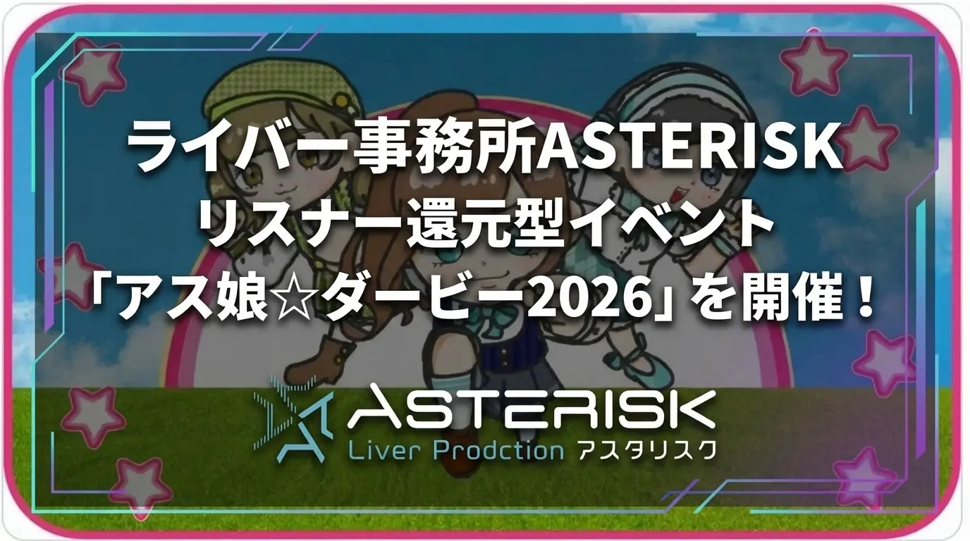 2026年1月12日から18日までの期間、ライバー事務所「ASTERISK(アスタリスク)」は、事務所イベント「アス娘☆ダービー2026 − リスナー大還元祭 −」を開催した。
