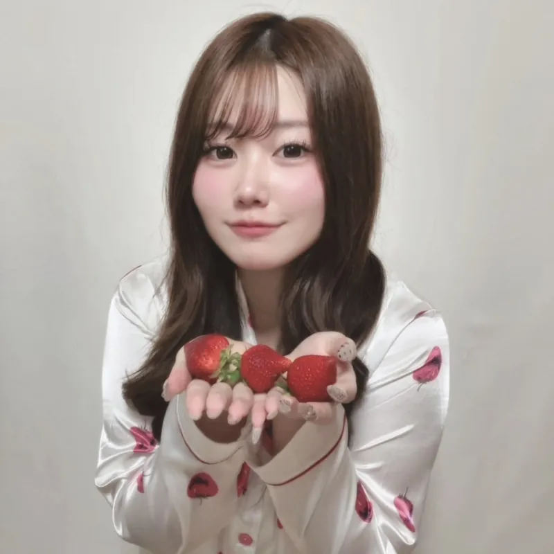 それぞれ可愛らしいパジャマ姿で、苺を手に持ったキュートなショットを披露してくれている。