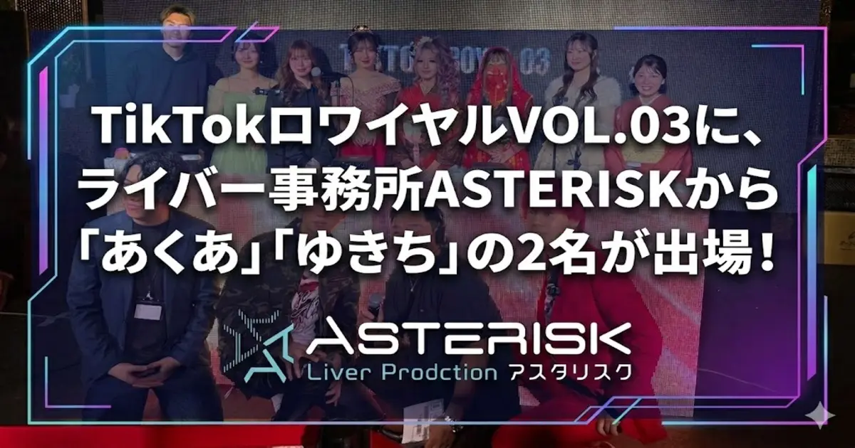 本イベントには、プラチナスポンサーであるライバー事務所ASTERISKから、あくあとゆきちの2名が事務所代表として出場。