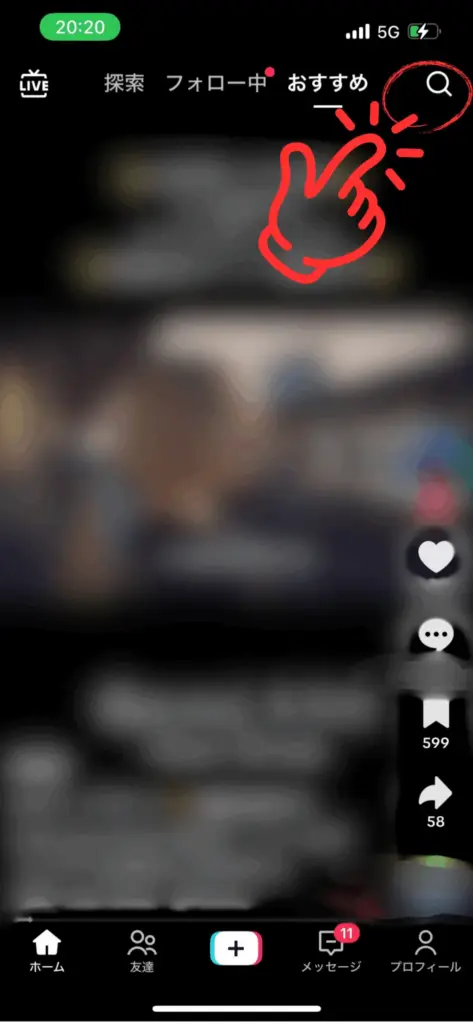 TikTokアプリを開き、画面下部のホームボタンをタップします。