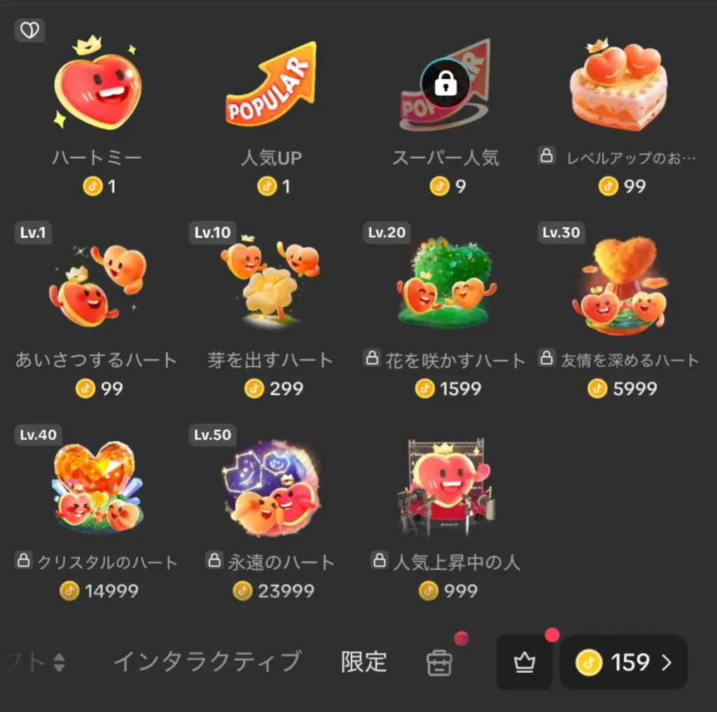 さらに、レベルに応じて限定ギフトが使えるようになり、配信をより楽しめる特典も用意されています。