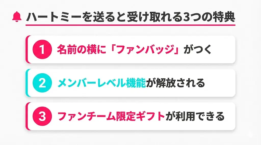 TikTokライブにおけるハートミーは、配信者のファンチームに参加するための条件となるギフトです。