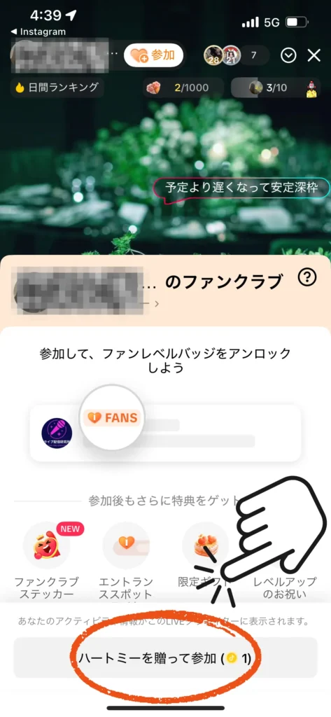 ハートミーは1コインで利用でき、誰でも気軽に配信者のファンチームに入ることができます。