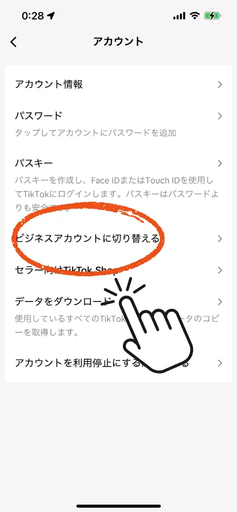 「ビジネスアカウントに切り替える」という項目をタップします。