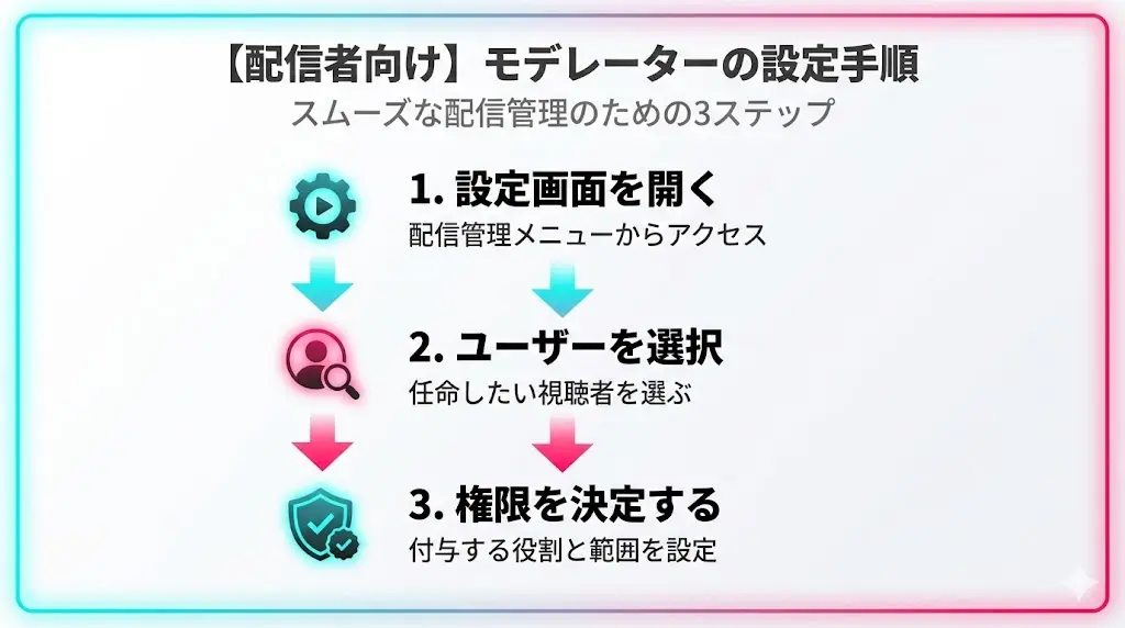 ここでは、モデレーターの設定方法を画像付きでわかりやすく解説していきます。