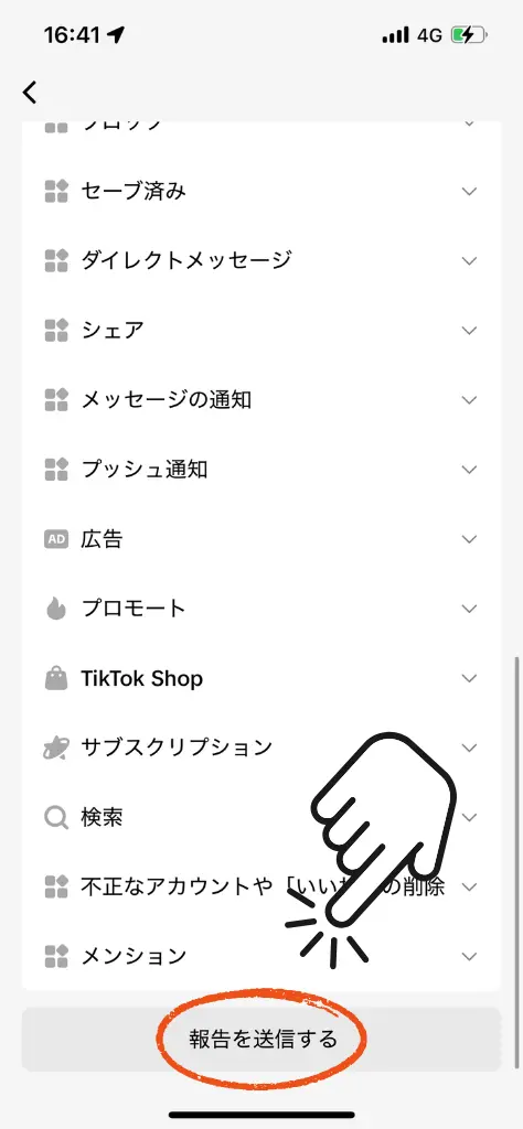 画面下部までスクロールし、「報告を送信する」をタップします。