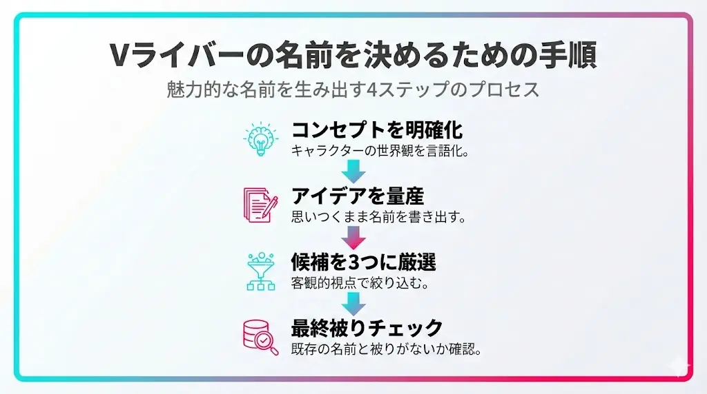 ここでは、Vライバーの名前を決める具体的な4つのステップを解説します。